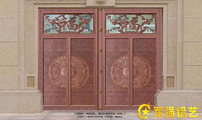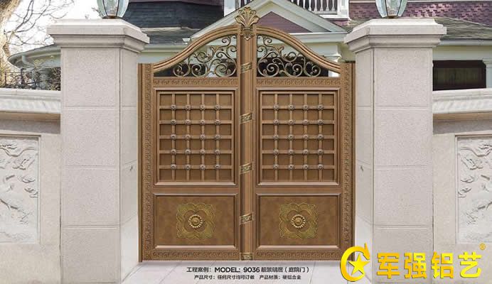 時間:2020-05-08 13:04:17 次數(shù):314 來源:軍強庭院門本款鑄鋁庭院門,型號是6870,任何尺寸均可定做,鏤空門扇采用各種尺寸鋁型材及鋁花拼接而成,實心門扇采用整體鑄鋁板而成。